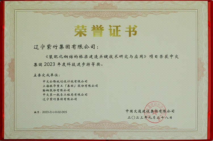 喜報!熱烈慶祝遼寧紫竹集團榮獲中交集團2023年度科技進步特等獎!